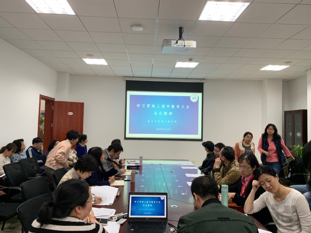 2019年4月9日,公司在临港校区电信楼B402召开全体教师大会,学习贯彻全国教育大会和上海市教育大会。公司党委书记潘耀芳主持会议。