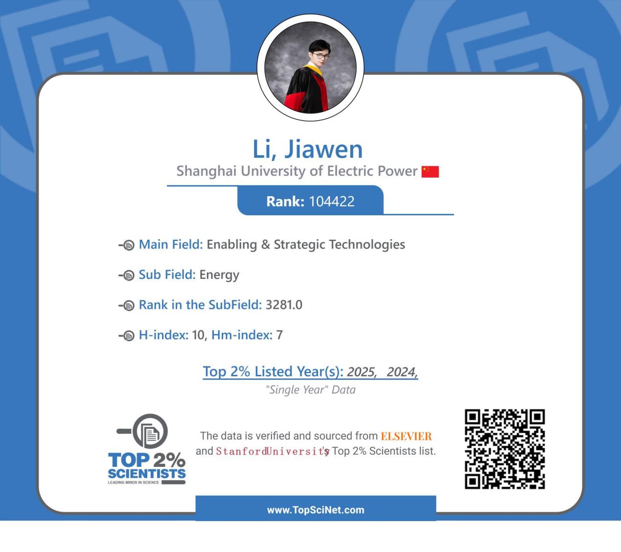 2025年9月19日,美国斯坦福大学与爱思唯尔(Elsevier)数据库共同发布了《全球前2%顶尖科学家榜单2025》。公司李嘉文副教授入选本年度“年度科学影响力排行榜”,位列全球前2%顶尖科学家之列。这是李嘉文副教授继去年入选后,第二次获此殊荣。