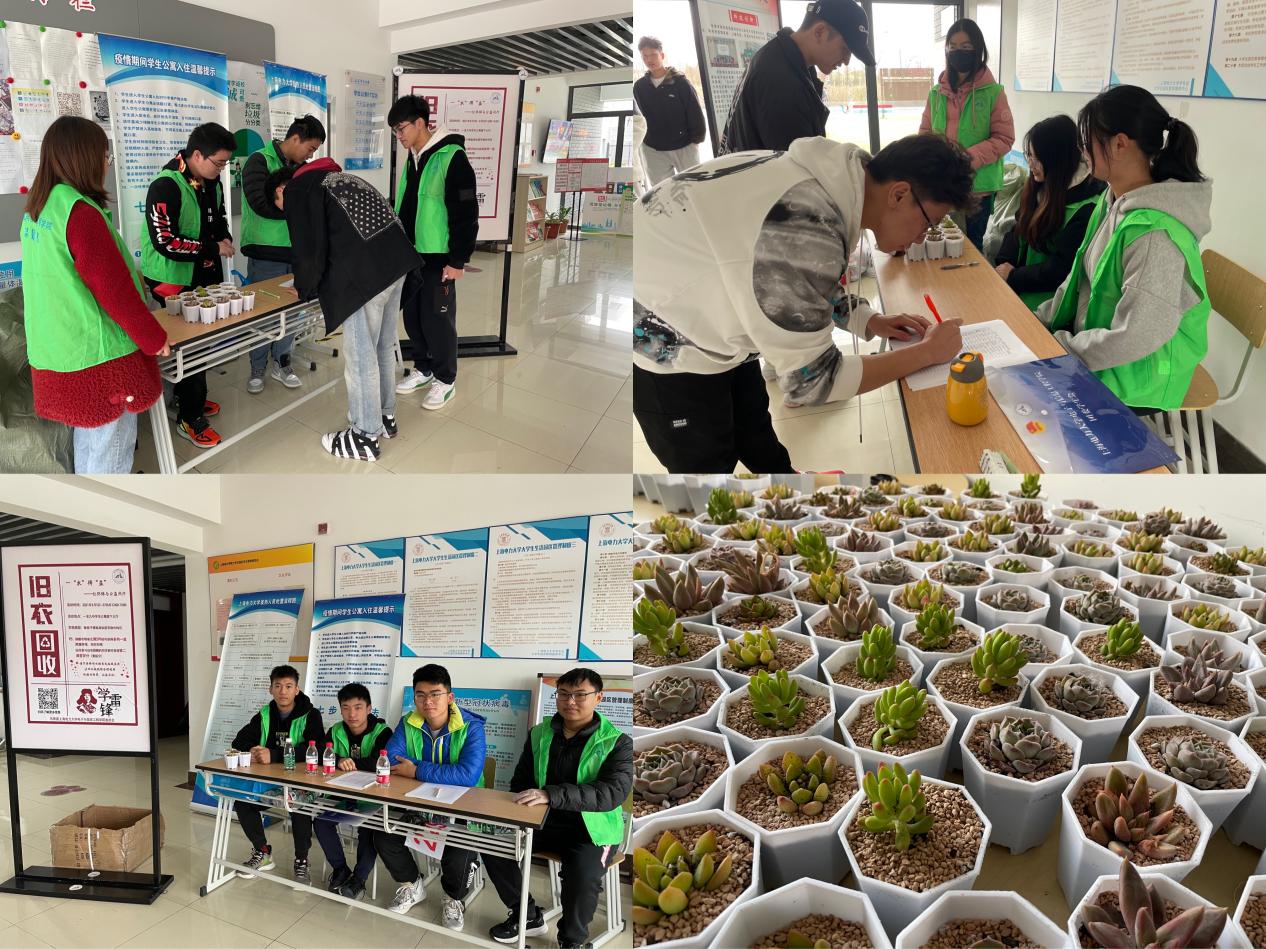 满盈春的清新,心怀热切暖流。在此次活动期间,志愿者在每栋宿舍公寓楼下都设置了衣物回收摊位,许多同学拎着大包小包的衣物前来捐赠,志愿者们对收到的旧衣物进行了回收处理,分类打包,为参与旧衣回收的同学们准备了绿植,通过捐赠旧衣物来换取绿植,让同学们更亲切地了解环保与公益的意义。