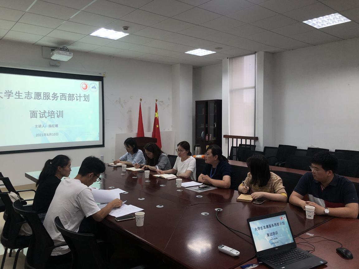 经员工本人申请,公司推荐,公司初选,公司员工李兴虎、彭娟通过2021年老员工志愿服务西部计划校内选拔,进入上海市复试环节。为提高面试通过率,辅助员工掌握面试技巧,6月10日,公司特邀经管公司辅导员、朝日之窗生涯工作室负责人杨红娜老师为两位同学开展面试培训会,参加会议的还有党委副书记周冬梅、团委书记许晓天、就业专项负责人黄燕、毕业班辅导员崔释匀、任帼菲。