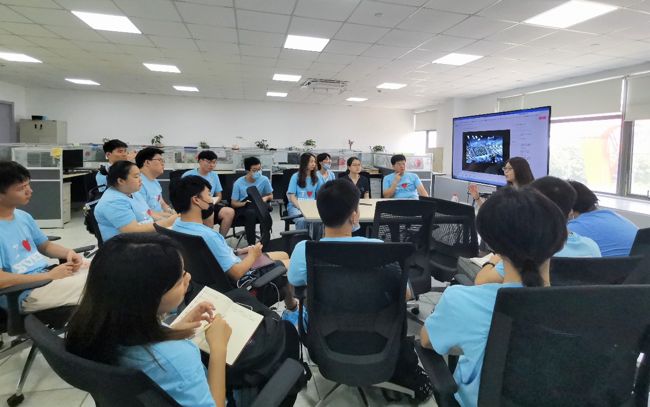 在随后开展的座谈会上,实践队成员就企业人才的培养方式、技术创新,企业对于应聘者的要求以及在5G大环境下企业面临的发展机遇等问题进行了提问交流,复旦微电子的工程师们一一解答,强调公司对于人才的选拔上更倾向于选择项目经验丰富、动手能力强两项特质,以及踏实肯干、有耐性、有恒心的性格特征更容易受到青睐。同时公司注重对新进人员的培养,采用“一对一导师制”,通过师徒相互评价及时反馈培养成效,确保新人的培养质量。2021届毕业生刘琦通过“导师制”培养,在复旦微电子开展半年多的实习,各方面表现受到同事们的一致好评,最终被转正录用。座谈会结束后,同学们都深有感触,暑期社会实践调研队李丰蔚同学当场表示想要来公司参加实习实践,并表示要为集成电路事业贡献一份自己的力量。