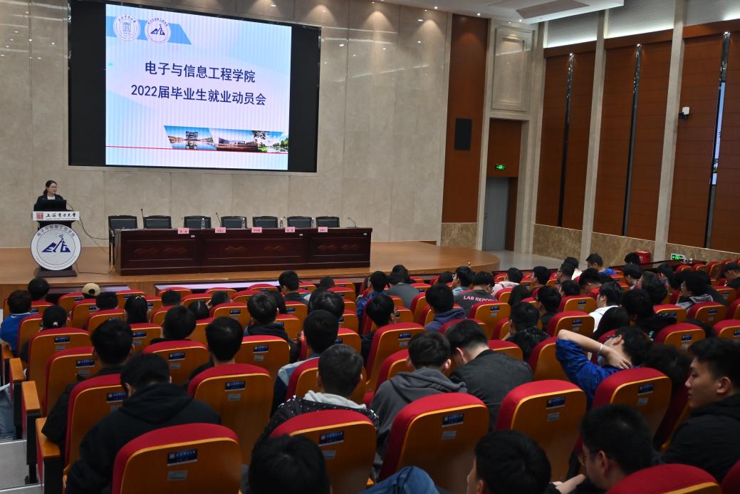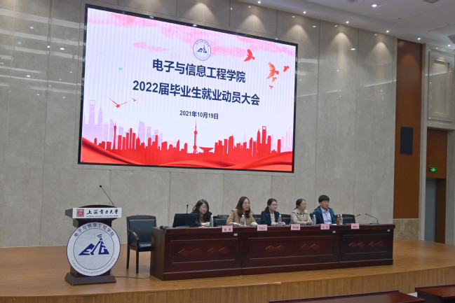 为做好2022届本科毕业生就业工作,提高员工就业意识,增强员工就业紧迫感,树立正确就业观,10月19日下午电信公司在临港校区学术楼117报告厅召开“2022届毕业生就业动员大会”。电信公司党委副书记周冬梅,副经理赵琰,公司就业专项工作负责人黄燕,2022届毕业班辅导员许晓天、崔释匀出席会议,全体2022届本科毕业生参会,会议由许晓天主持。