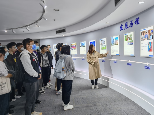 师生一行来到复旦微电子的杨浦分部,吕沁沁对电信公司师生的来访表示欢迎并结合宣传视频介绍了复旦微电子的基本情况。该公司是国内从事超大规模集成电路的设计、开发、生产(测试)和提供系统解决方案的专业公司,是国内成立最早、首家上市的股份制集成电路设计企业,现已形成安全与识别、智能电表、非挥发存储器、智能电器、可编程器件FPGA、互联网创新六大成熟的产品线和系统解决方案,产品行销30多个国家和地区。随后吕沁沁在展览厅带着师生了解了公司创办以来的历史和取得的成就,复旦微电子自1998年成立以来,经过筚路蓝缕的创立期和追求卓越的成长期,逐步形成了信任尊重、诚实守信、激情创新、领先卓越的企业文化,正逐步成为国内乃至国外一流集成电路设计企业。