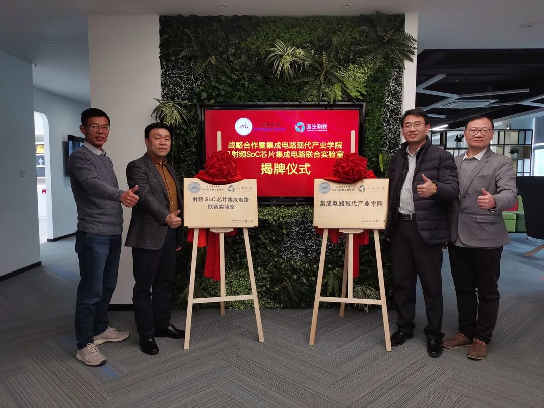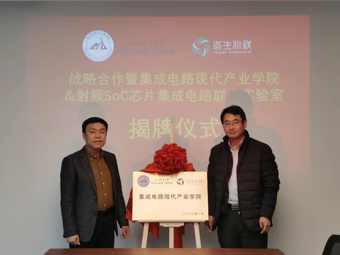 2022年1月25日下午,太阳成集团tyc9728电信公司与上海道生物联技术有限公司举行“集成电路现代产业公司”和“射频SoC芯片集成电路联合实验室”揭牌仪式。