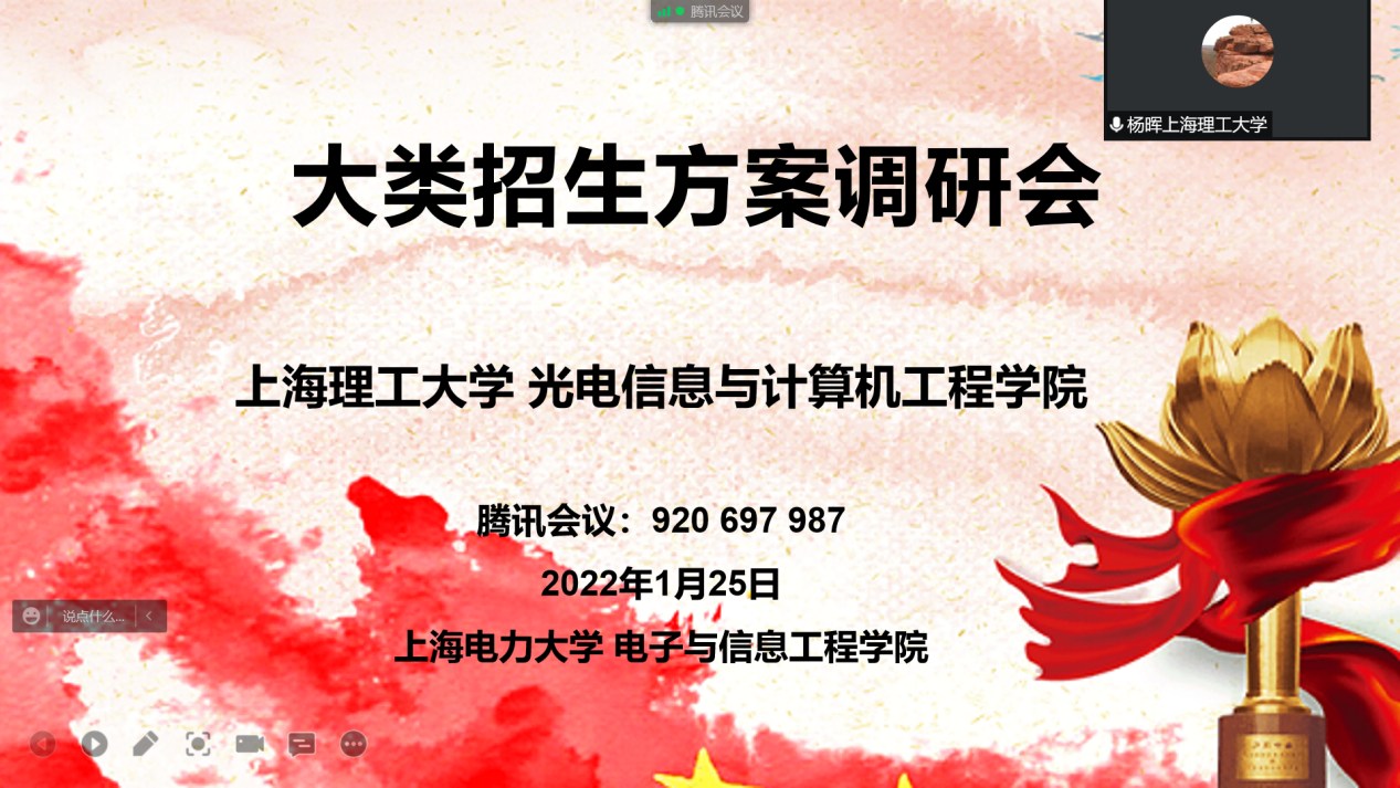 为进一步推进公司大类招生试点工作,1月25日,电信公司线上举行大类招生方案调研会,邀请上海理工大学光电公司副经理杨晖做了关于大类招生的经验分享报告,电信公司副经理赵琰和各专业负责人参与了交流讨论。
