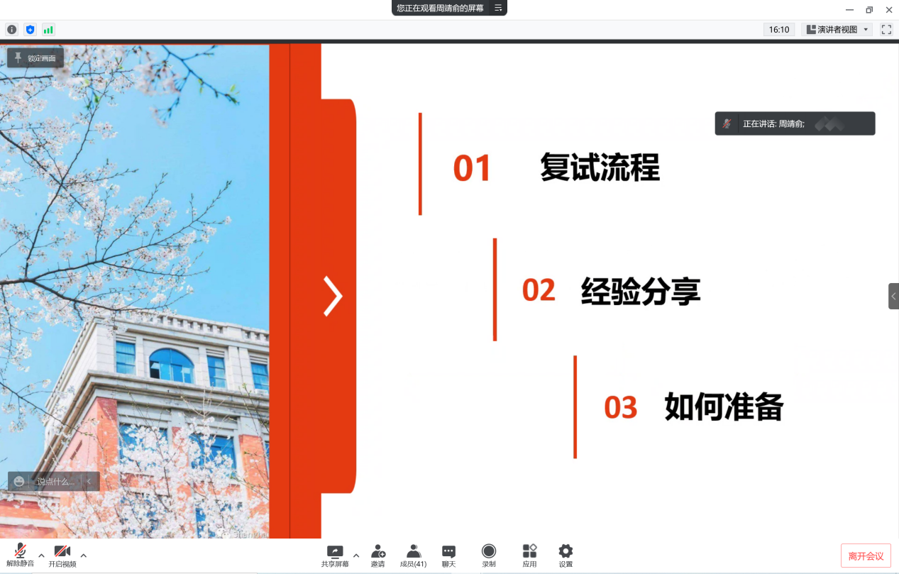 第一个环节由6位往届优秀学子分享复试经验。