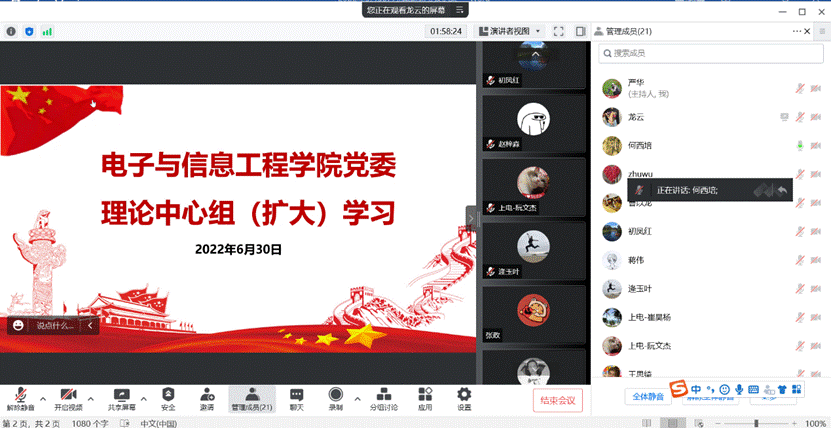 何西培谈到,这是一次十分重要的会议,是我们政治生活中的一件大事。过去5年,上海始终牢记嘱托、砥砺奋进,坚决担起“开路先锋、示范引领、突破攻坚”的特殊职责,开创了各项事业蓬勃发展的新局面。围绕今后5年的目标愿景,新征程上我们要明确重点任务、抓住关键环节,以各领域各方面的工作突破开创事业发展的新局面。作为电信公司一名党员教师,我们要积极响应号召,大力弘扬伟大建党精神,进一步坚定理想信念,锤炼责任担当,激发奋斗热情,坚持把立德树人作为根本任务,永葆为党育人、为国育才的初心使命。把个人发展融入实现高水平科技自立自强的实践中,瞄准电子信息学科前沿和关键领域,增强学科专业设置的科学性,加大开拓创新力度,加强产学研深度融合,促进科技成果转化。努力办好一流专业,培养一流人才。砥砺奋进、勇毅前行,在新征程作出新业绩,促进新发展,以实际行动努力为上海这座光荣的城市增光添彩,迎接党的二十大胜利召开。