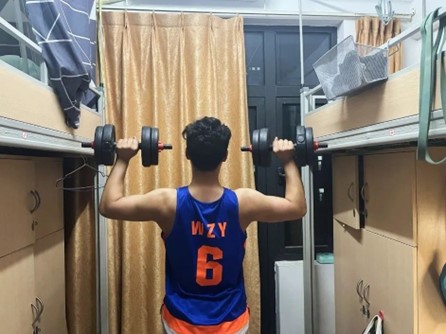课余时间,王致远同学热衷于体育运动,篮球场、健身房,总少不了他的身影。“篮球让我学会分享、健身让我更加自律”,体育运动带给他的不仅是健康的体魄,更为他提供了奋发拼搏的精神动力。