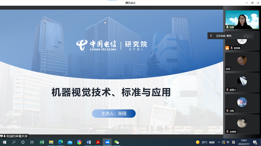 张园副所长的讲座题目为“机器视觉技术、标准与应用”。讲座介绍机器视觉的概念起源,机器视觉的系统组成和技术发展、机器视觉相关标准组织及工作进展、典型应用场景及产业化,并结合机器视觉研究中心工作探讨未来技术路径和标准化工作方向,以及对垂直行业与通信产业的价值和意义。