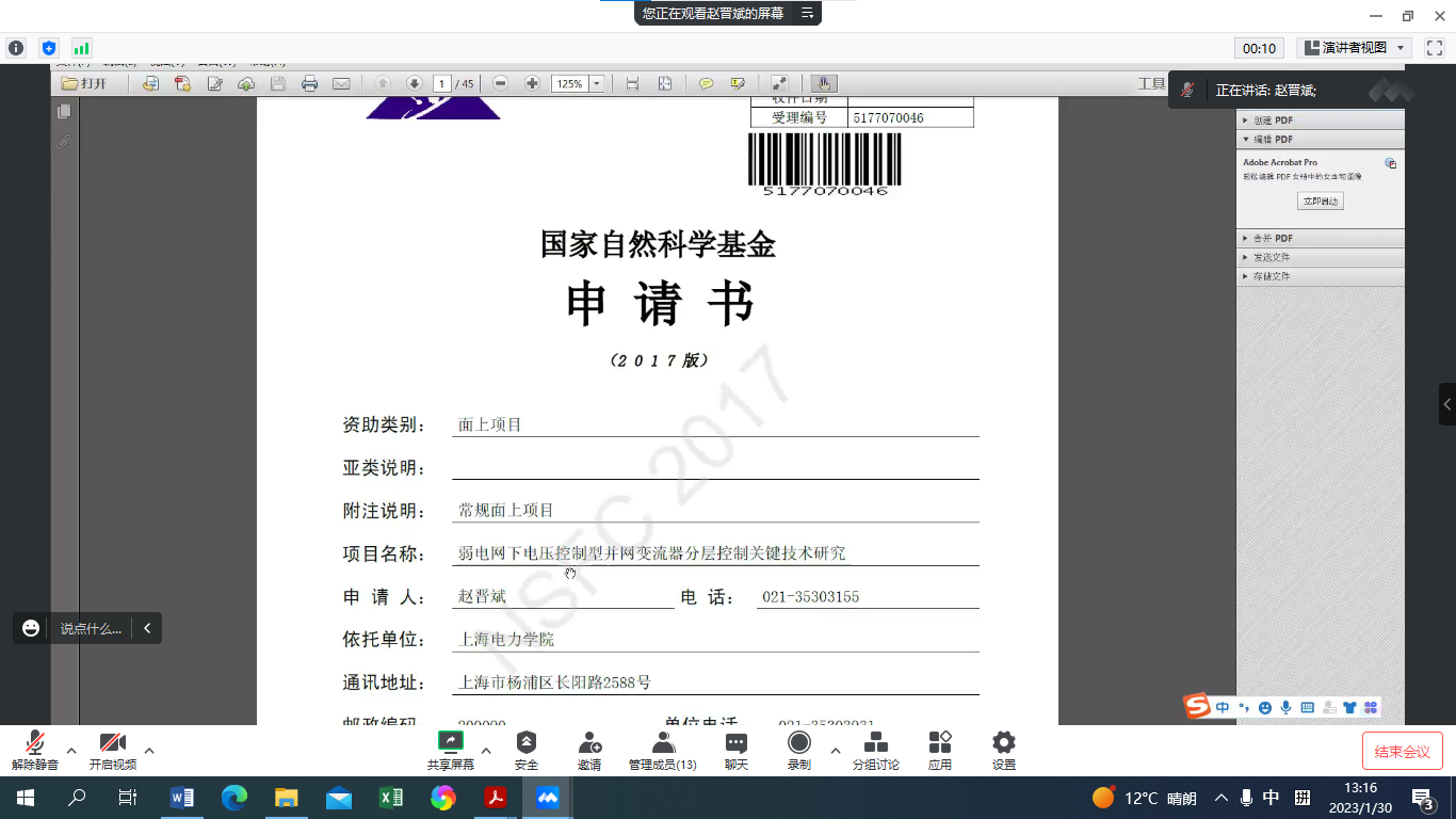 2023年1月30日下午13:00,公司主办的“2023年国家自然科学基金申报系列活动”第7期成功举办。本次活动邀请了公司电气工程公司的赵晋斌教授作国家自然科学基金申报讲座。讲座由崔昊杨经理主持,公司10余名教师参加了会议。