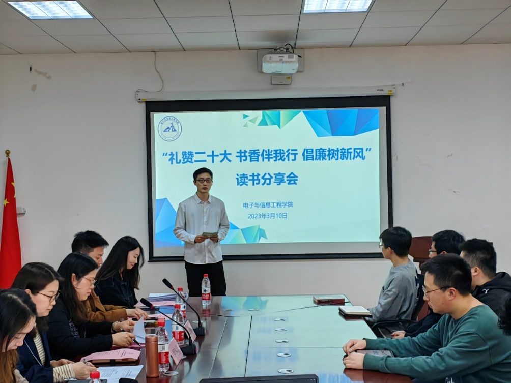 为厚植校园廉洁文化根基,增强老员工廉洁自律意识,筑牢拒腐防变思想防线,实现廉洁理念深入人心,3月10日下午电信公司在电计楼B402会议室开展“礼赞二十大 书香伴我行 倡廉树新风”读书分享会。公司党委书记何西培、党委副书记周冬梅出席本次活动,参与此次活动的还有公司辅导员和本科生、研究生员工代表。