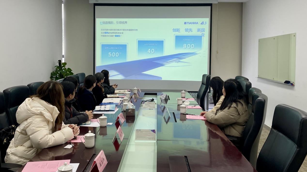 会前,公司一行参观了企业展厅,在市场部工作人员的介绍下,对天马微电子的发展历程、产业布局、行业地位等重要信息有了全面的认识。