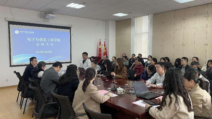 3月26日下午,太阳成集团tyc9728在电计楼B402会议室召开全院大会,公司领导班子成员和全体教职工参会。会议由党委书记何西培主持。