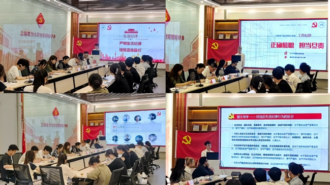支部员工党员代表郑友喆和张佳琳结合真实案例和警示教育片,对“生活纪律”和“工作纪律”进行了讲解。他们指出,纪律在生活中无时无刻存在,把规则放在心上是个人的立身之本,对明确入党初心具有重要启示作用,要慎独慎初慎微慎欲,培养和强化自我约束、自我控制的意识和能力,真正做到“心不动于微利之诱,目不眩于五色之惑”。