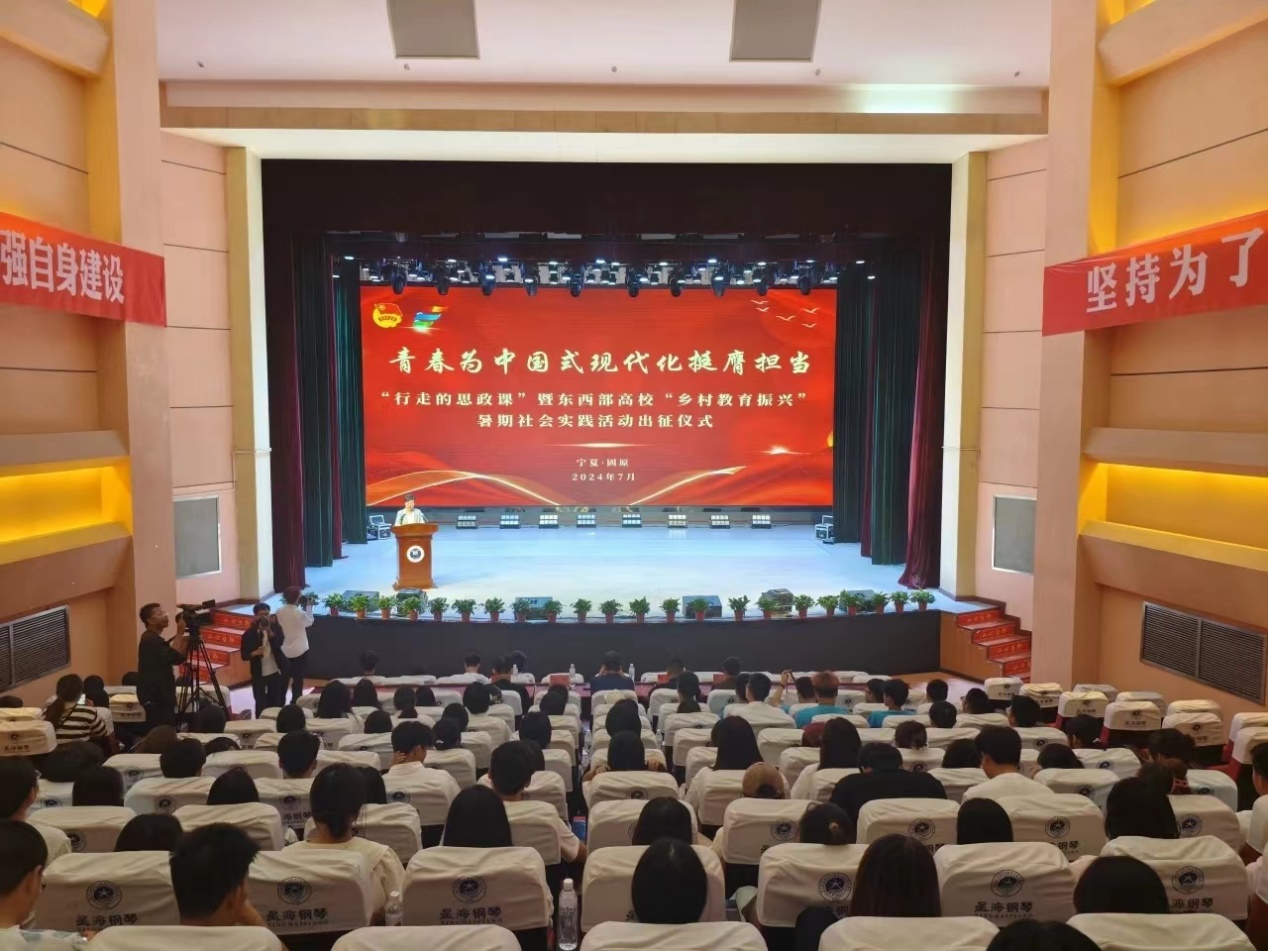 7月8日,太阳成集团tyc9728、宁夏师范大学、闽南师范大学、北方民族大学联合开展“青春为中国式现代化挺膺担当”——“行走的思政课”暨东西部高校“乡村教育振兴”暑期社会实践活动。出征仪式在宁夏师范大学举行,宁夏师范大学党委副书记吴孝出席并讲话授旗,公司电信公司团委书记李天成带领赴宁夏暑期社会实践队参加了本次活动。