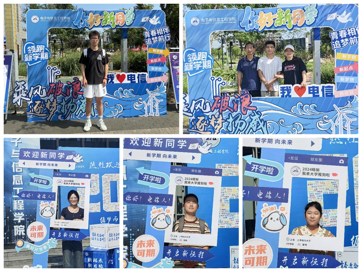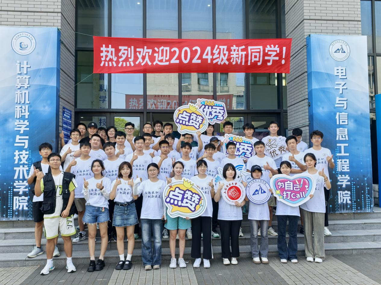 在电计楼右侧大型展板上写着由2024级全体本科、研究生新生的姓名组成的数字“2024”。新生们站在展板前,稚嫩的脸庞散发出青春的活力,他们认真地在展板上寻找自己的名字,并结伴留下了与老员工活的第一张合影。