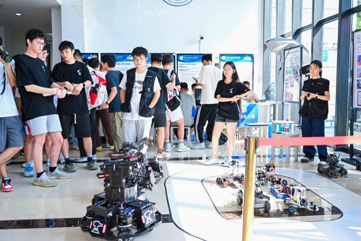 登记台前,还设立了员工科技创新作品展区,展示了机甲战车等智能机器人,这些展品和着音乐声在员工的操控下“翩翩起舞”,吸引了大量新生和家长驻足观赏,在每一位新生的心中都埋下了科技创新的种子。近年来,电信公司员工科创团队斩获了包括全国电子设计竞赛一等奖、物联网竞赛全国一等奖在内的300余项国家级和省部级荣誉,以及多次获得“互联网+”、“挑战杯”上海赛区金奖,公司的科技创新团队期待着每一位新生的加入。