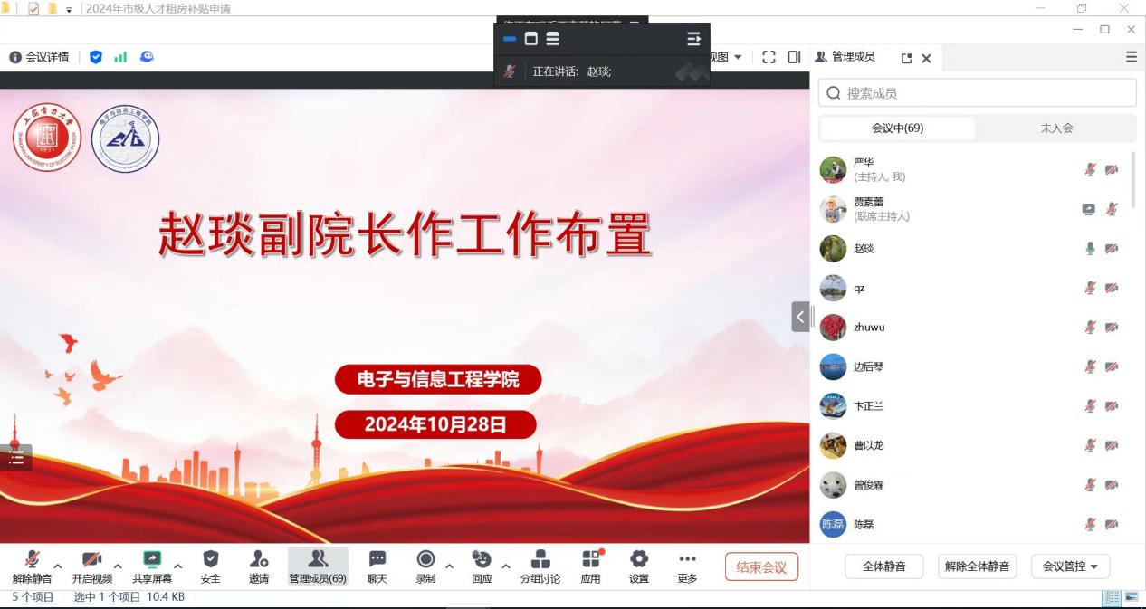 赵琰针对电信公司本科公司产品审核评估工作做了具体部署。她详细介绍了审核评估中各考察点的各项要求和具体工作流程,呼吁每位老师都以积极昂扬的面貌,认真负责的态度,做好本科公司产品的自查自建工作。